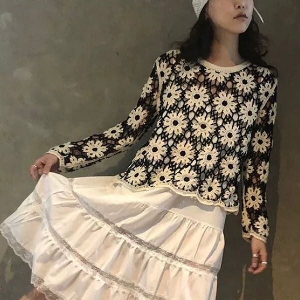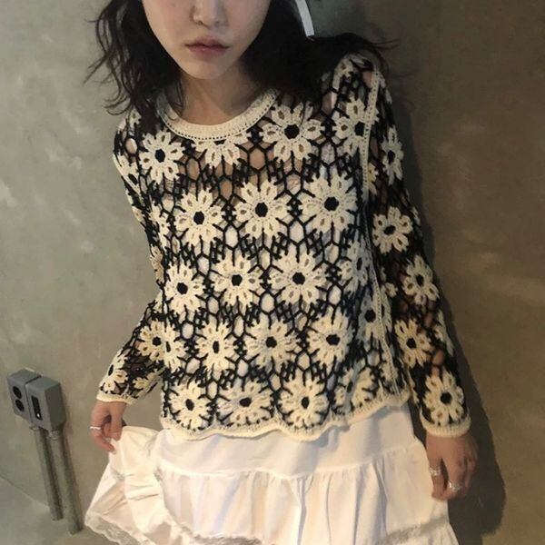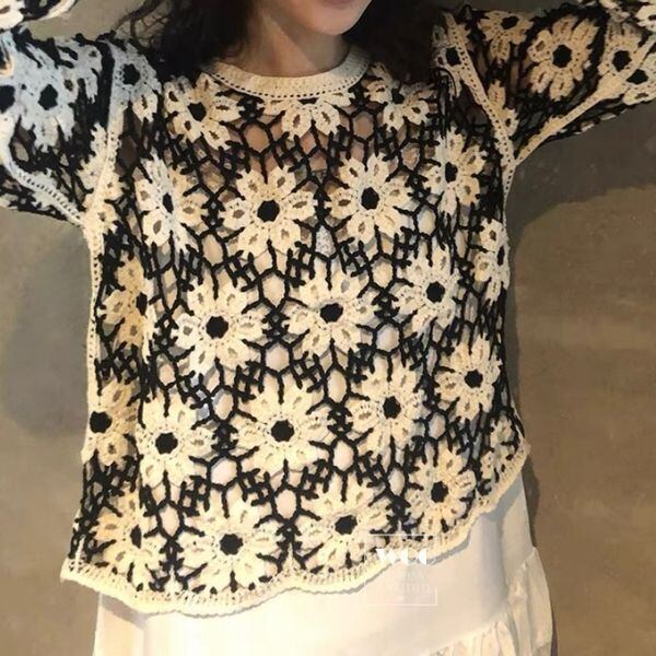 Floral Crochet Pullover 503146
