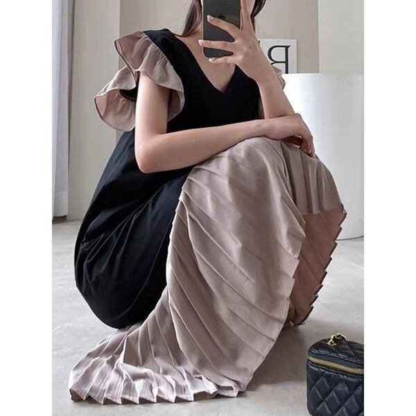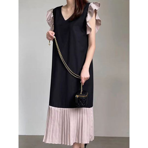 Bi-color Frill Pleats One-piece 501264