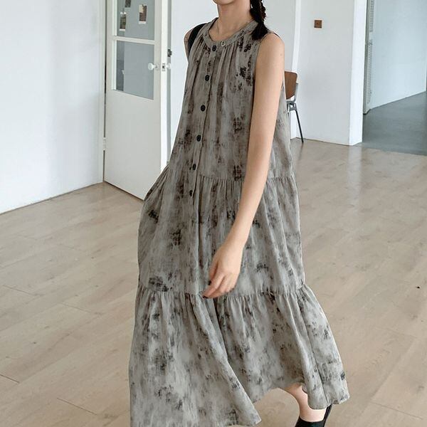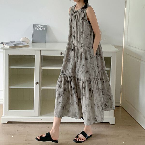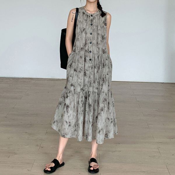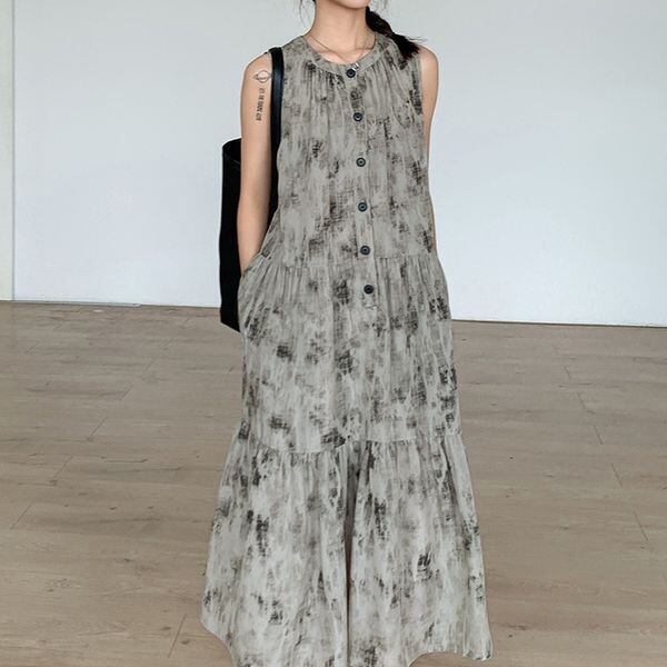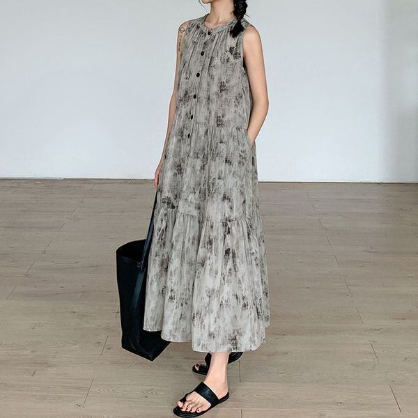 Vintage Print Sleeveless One-piece 501503
